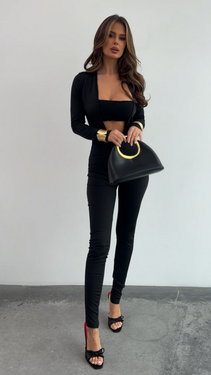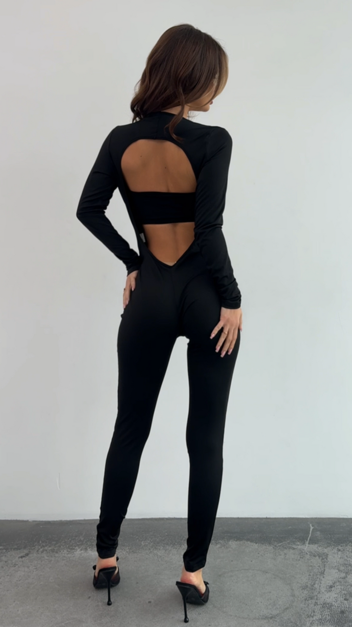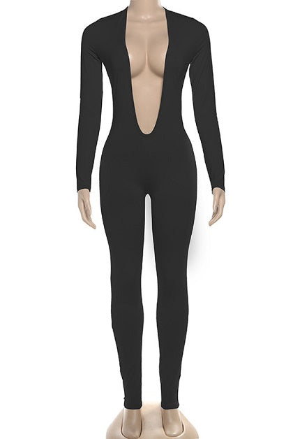 Fashionable backless deep V long-sleeved tight jumpsuit