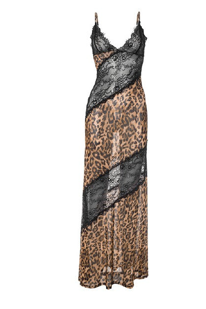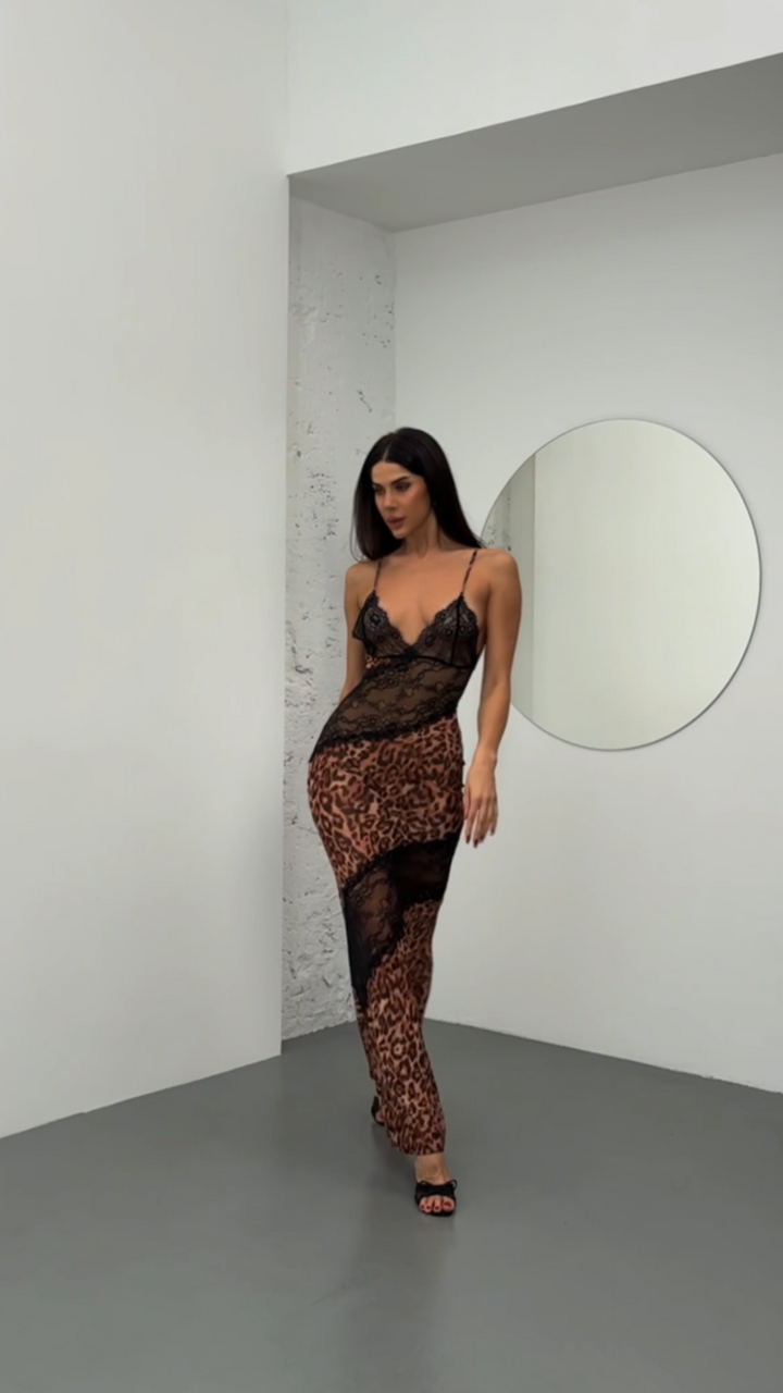Printed Patchwork Lace Deep V Halter Fishtail Dress